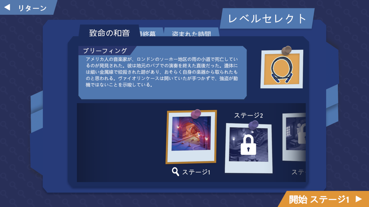 通常のミステリーゲームは会話シーンがあるのですが、あえてその「たるさ」を省いているインタフェースでしょうか。これはプレイしやすいです。