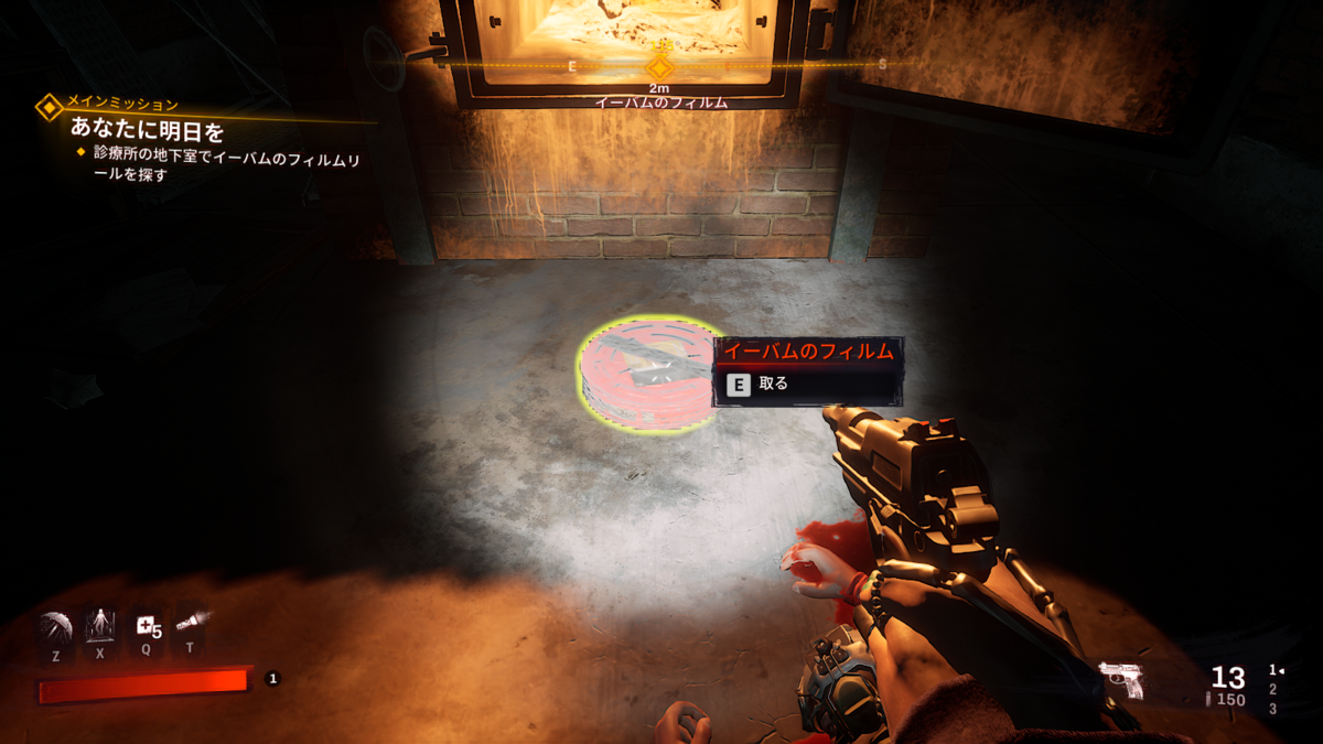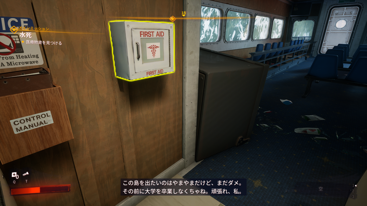 最初は指示通り救急薬を入手して、ヘルスをアップしましょう。インタラクトはEキーです。