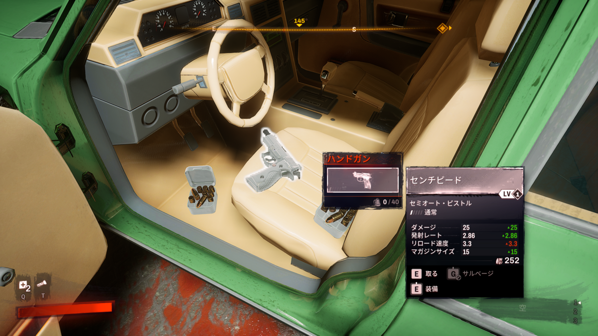 前の入り口から入ると、車の中にハンドガンがあります。