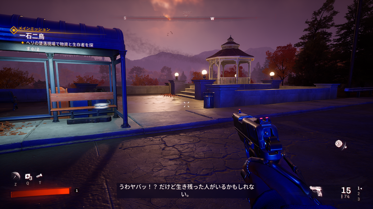 ピストルの時はFキーが効かなくて苦労しましたが、ショットガンを装備していたらFでくい打ちできました。